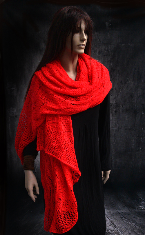Gebreide opengewerkte supergrote sjaal, rood