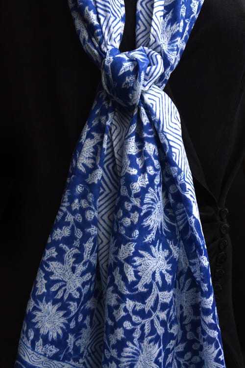 Katoenen origineel blockdrukprint sjaaltje, blauw en wit