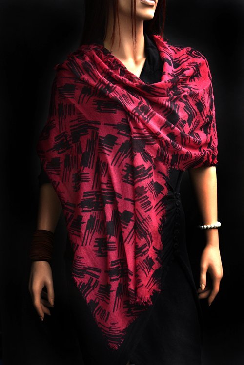 Wollen sjaal, bordeauxrood, zwarte figuren